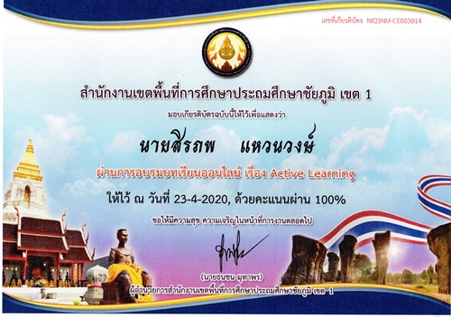 เกียรติบัตรการอบรมเรียนออนไลน์ Active Learning