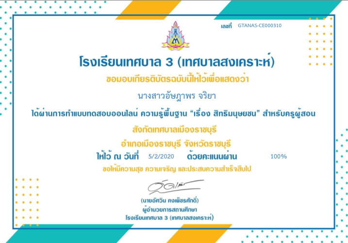 ชื่อผลงาน : ความรู้พื้นฐาน เรื่องสิทธิมนุษยชนสำหรับครูผู้สอน