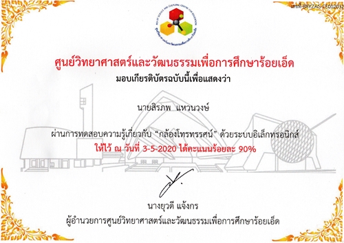 ชื่อผลงาน : เกียรติบัตรการอบรมออนไลน์ เรื่อง กล้องโทรทรรศน์ ด้วยระบบอิเล็กทรอนิกส์