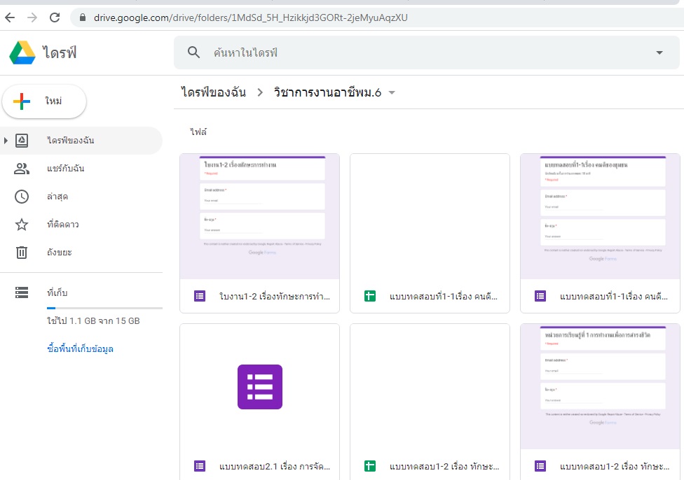 ชื่อผลงาน : ข้อสอบออนไลน์ วิชาการงานอาชีพมัธยมศึกษาปีที่6 https://drive.google.com/drive/folders/1MdSd_5H_Hzikkjd3GORt-2jeMyuAqzXU