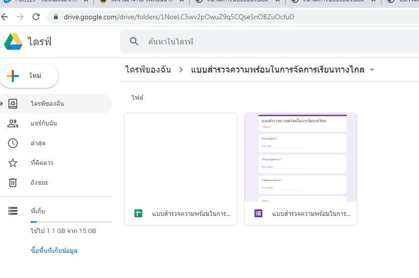 ชื่อผลงาน : แบบสำรวจความพร้อมด้านการเรียนทางไกล ตามสถานการณ์โรคโควิด-19 https://drive.google.com/drive/folders/1NoeLC5wv2pOwuZ9q5CQseSnOBZuOcfuD