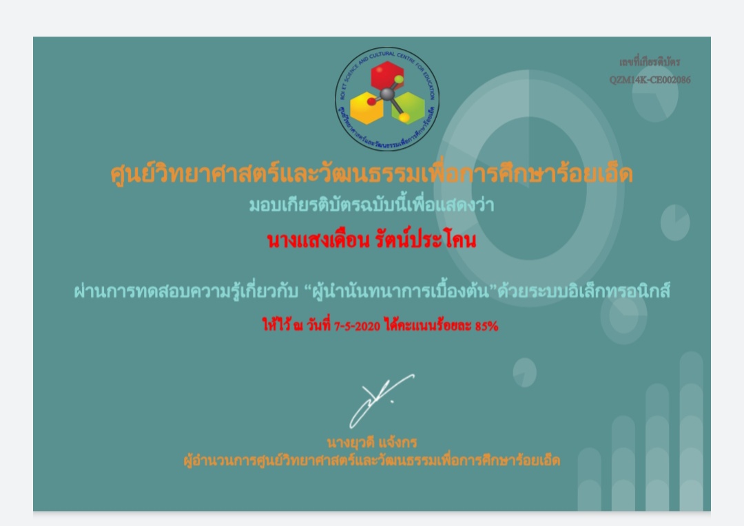ชื่อผลงาน : การทดสอบความรู้เกี่ยวกับ"ผู้นำนันทนาการเบื้องต้น"ด้วยระบบอิเล็กทรอนิกส์