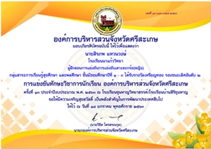ชื่อผลงาน : เกียรติบัตรผู้ฝึกสอนการแข่งขันเดาะตะกร้อหญิง รางวัลเหรียญทอง รองชนะเลิศอันดับสอง ชั้นมัธยมศึกษาปีที่ 1-3